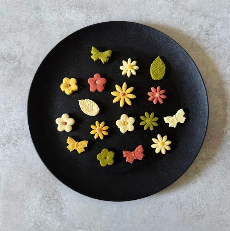 色鮮やかな花びらを形をしたかわいい米粉クッキーです。