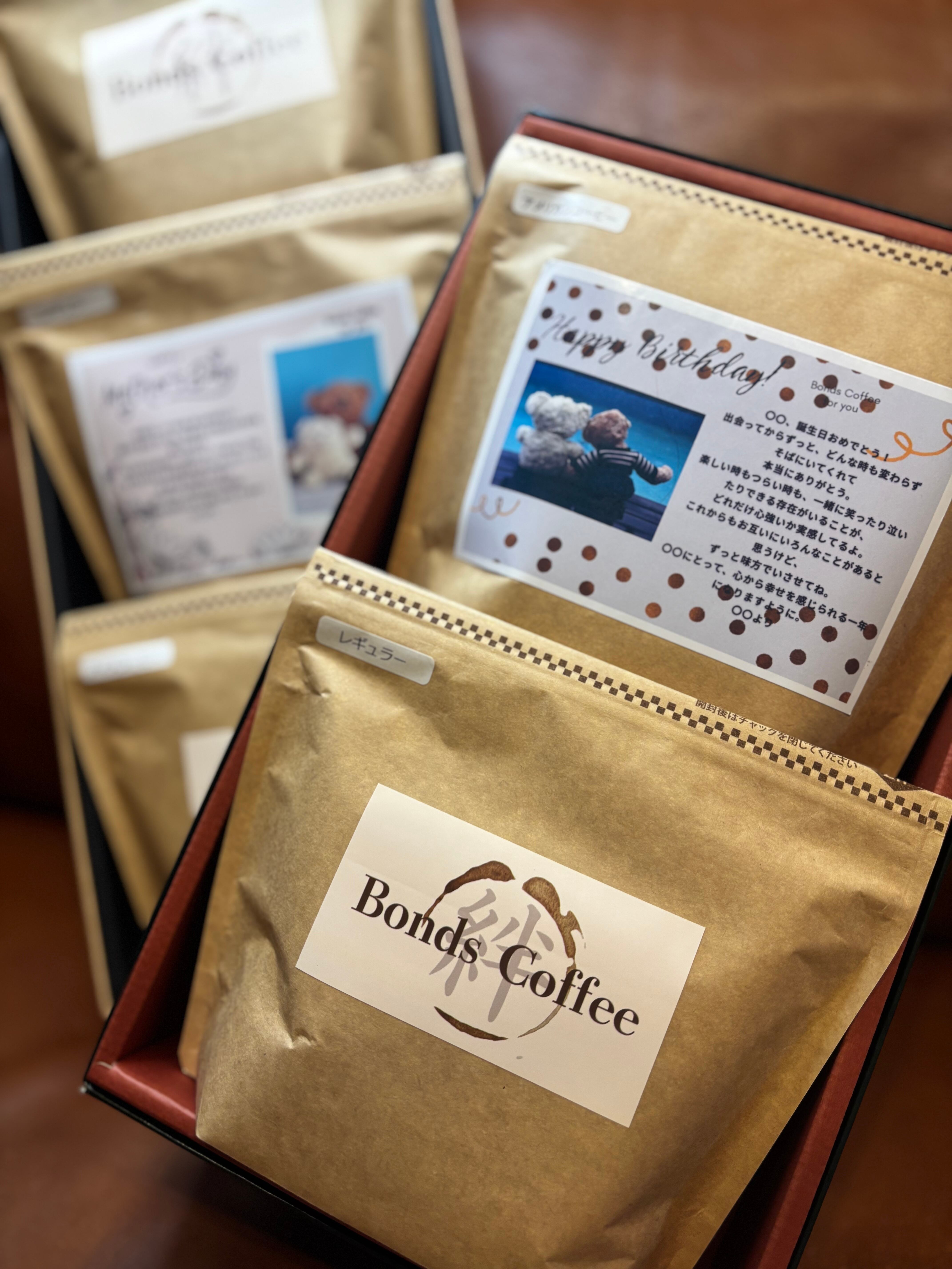 ラベルにお好きな写真とメッセージを入れられる 世界にひとつだけの自然栽培Bonds Coffeeギフトセット(お好きなコーヒー200g×2個)☆大切な方への最幸のプレゼントを私たちに託してください☆
